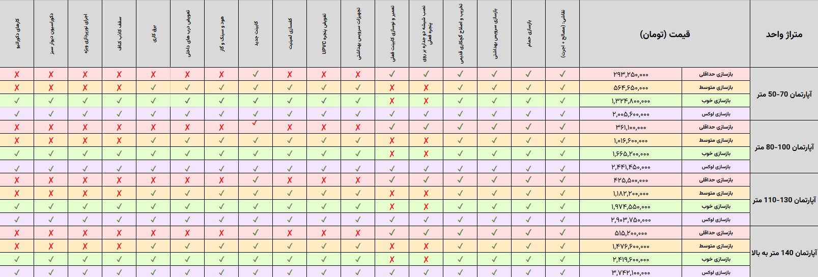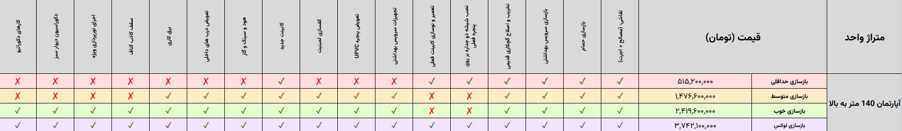قیمت بازسازی آپارتمان های بالای ۱۴۰ متر