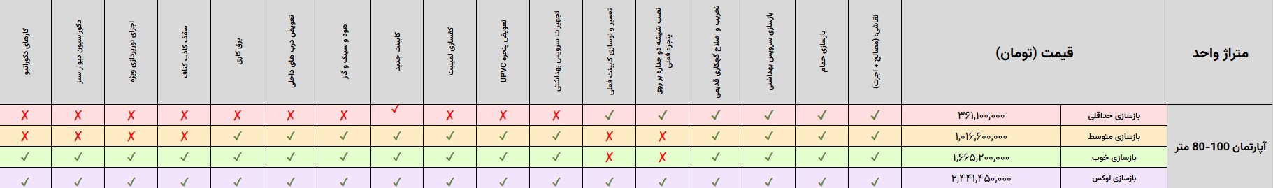 قیمت بازسازی ساختمان های 80 تا 100 متری